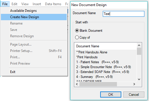 Click the cursor where the commands are to reside. Right-click and select Paste to paste in the document designer codes.