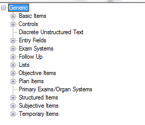 - Lastly, Click on the expander node next to "Generic" as shown in the screen shot above, to see the first level view of the SMARText Item Types available. Should a user want to see all of the SMARText Item Types, Click on the expander nodes next to each first level SMARText item.